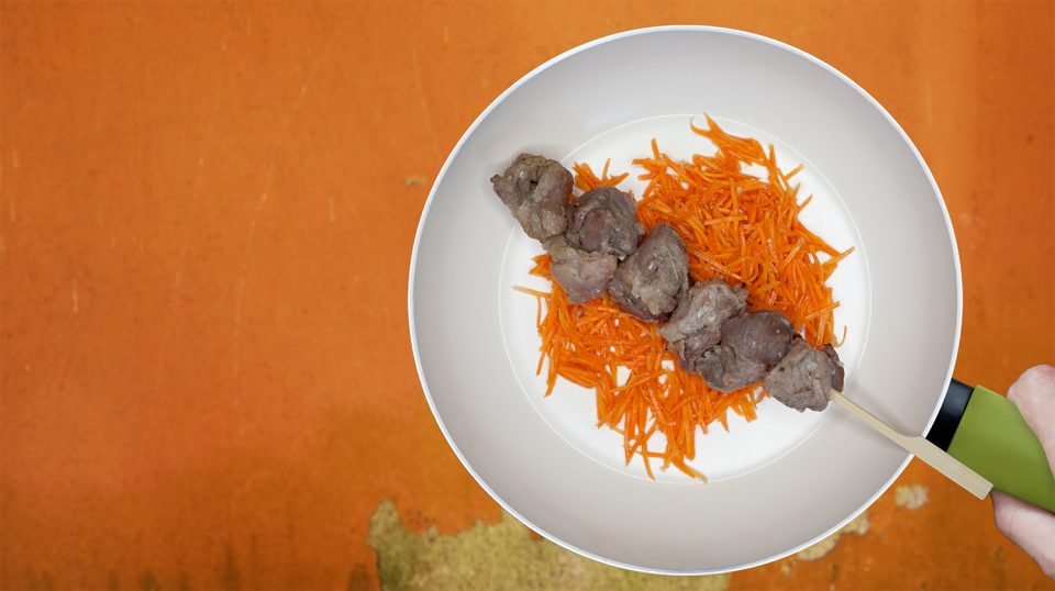 Schaschlik-Spieße auf Karottensalat